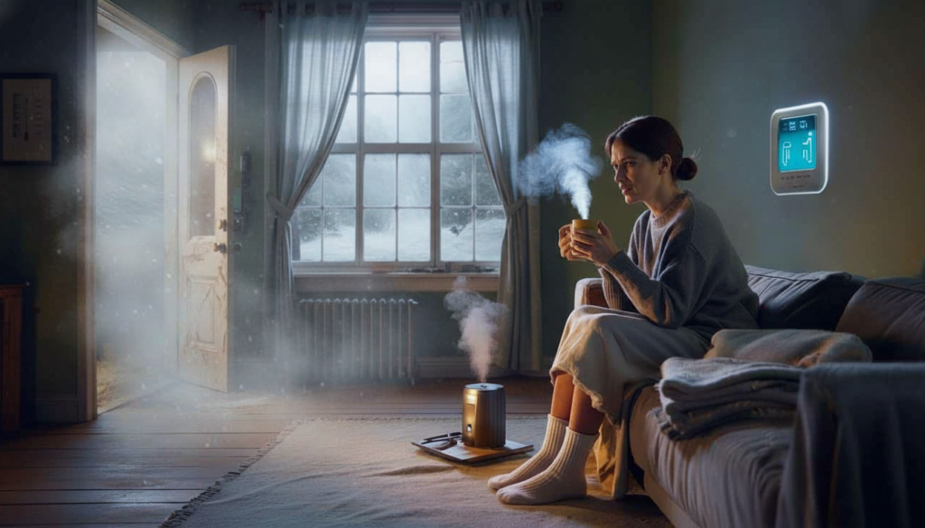 Heating engineers use simple words to talk about this: surfaces, leaks, and moisture. Even if the air is “warm enough,” cold walls, single-glazed windows, and bare floors take heat away from your skin. Your system has to reheat new cold air all the time because of small air leaks in doors, chimneys, and attic hatches.